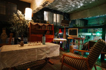 The Unique Lounge is located above the café in the main Vnitroblock space. Set on a mezzanine level, it offers comfort and privacy while still keeping you connected to the atmosphere of the main event below. Accessible by a staircase from the café, the lounge has the relaxed feel of a living room overlooking the heart of the venue.