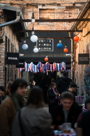 Ulička VNITROBLOCKU z ulice Dělnická nabízí několik prostorů, kterými můžeme rozšířit kapacitu a variabilitu eventových možností. Přímo u východu z VNITROBLOCKU do uličky se nachází malá zahrádka se stoly, kde je možné grilovat nebo umístit auto, které uličkou pohodlně vjede až ke dveřím do hlavního prostoru. Na opačném konci uličky u ulice Dělnická máme dvě parkovací místa, která pro vás můžeme zajistit. Chystáme pro vás zde i velkou eventovou halu.